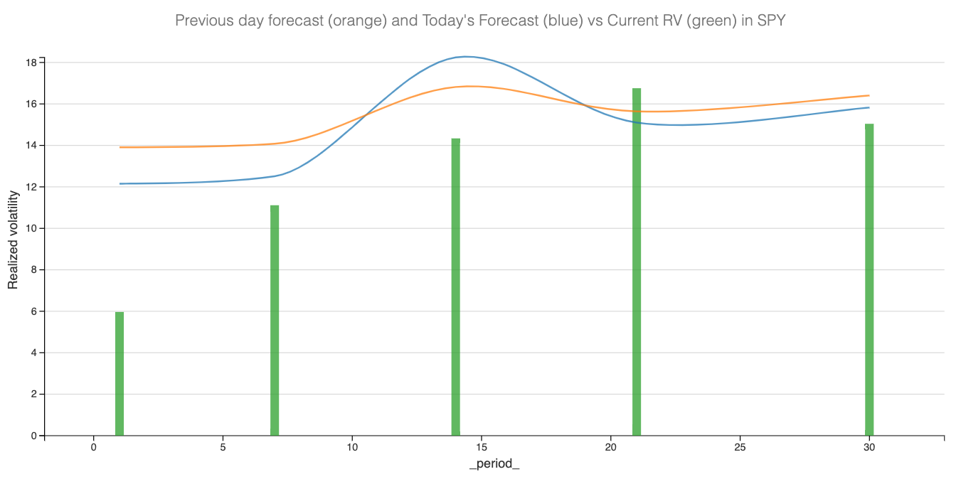 That’s not to say the backdrop isn’t turbulent—quite the opposite. Retail sales plunged in January, and the trade war looks more like it’s ramping up than easing, adding further inflationary pressure. Yet, for now, the market has adopted a wait-and-see stance, and that’s something we have to factor in: realized volatility forecast are steadily coming off what we were predicting a few weeks back, as the realized volatility at 30 days is now off the 16.5 mark.