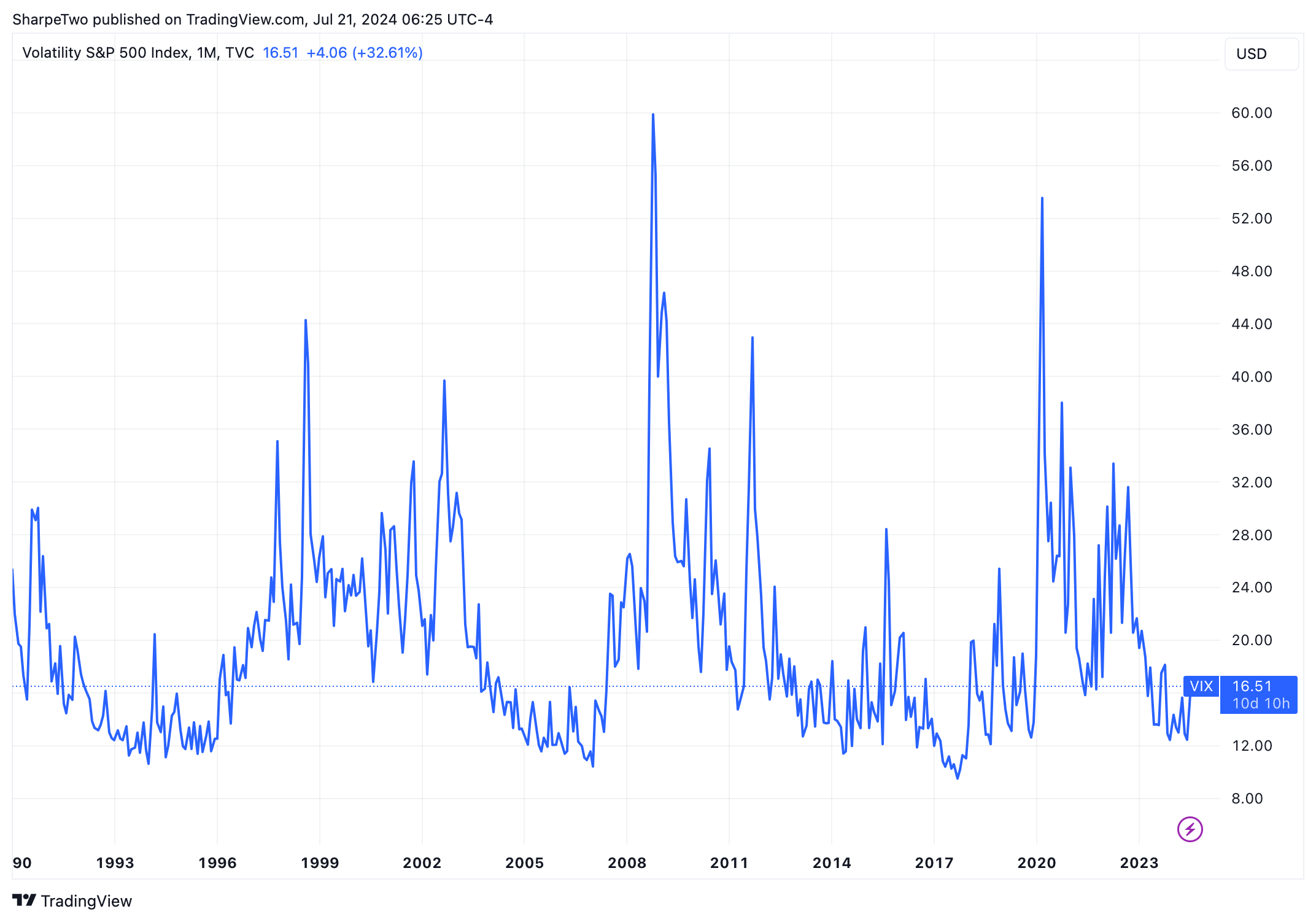 The big question: Is this just a spike, and will we be back to 12 before the end of the summer, or are we (finally) changing the paradigm? Our current favorite view is the latter.