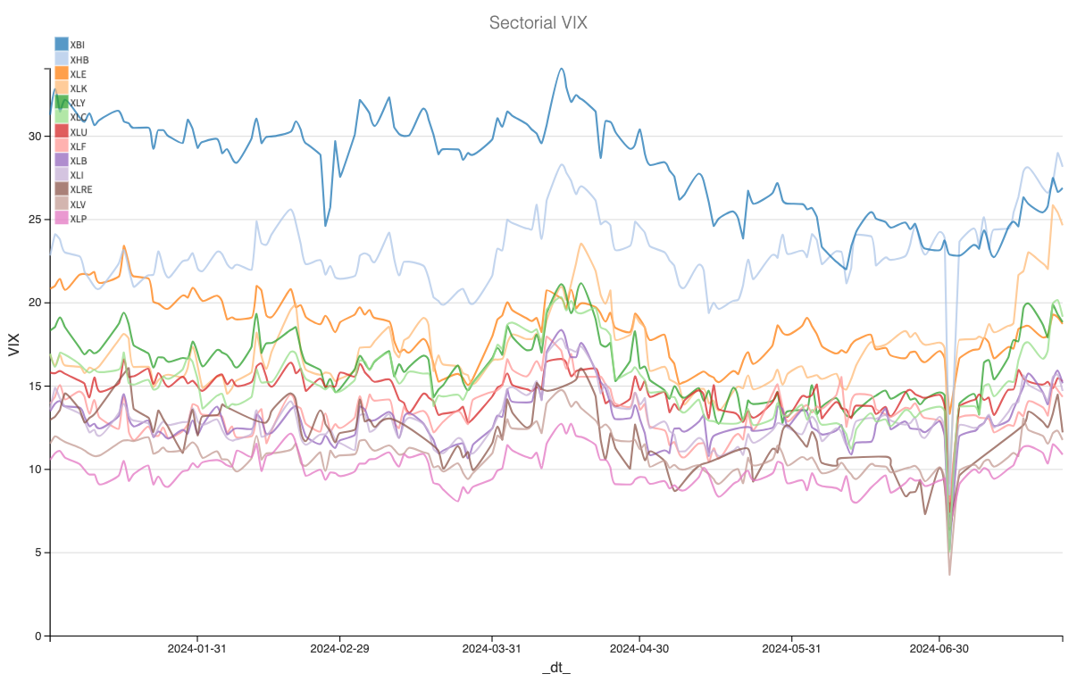 We don’t mean to imply that nothing will happen. As usual, we’d rather put emotion aside and stay data-driven. Here is a chart that shows the evolution of implied volatility for the different sectors in the SP500.