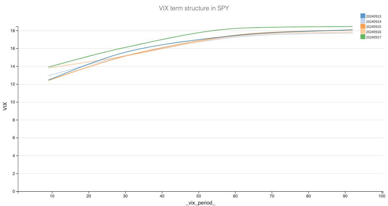 So, what should you do in this situation? Let’s have a quick glance at the term structure in options prices in SPY over the next 6 months.