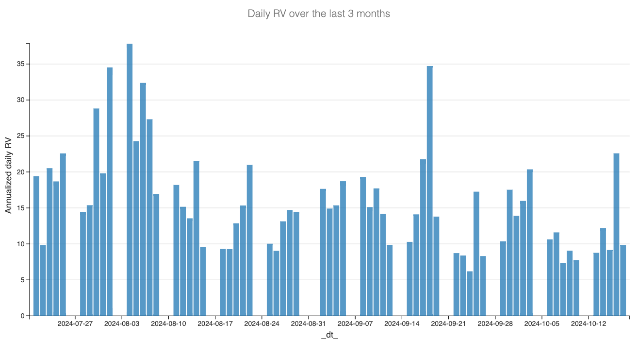 We’re now exactly two weeks away from the main event of the year: the combination of the NFP (Nov 1st), the US election (Nov 5th), and the FOMC (Nov 6th). And let’s be clear—there’s no guarantee the market will get rocky. Absolutely none. In fact, if it weren’t for a “volatile” Thursday driven by better-than-expected retail sales, we would’ve seen two straight weeks of daily realized volatility below 15. We take this as a sign that the market is eager to move on and settle into greener pastures for the rest of the year.