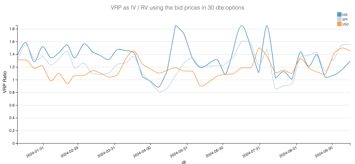So, what’s the play this week? Just put another coin in the jukebox and dance to the same optimistic tune from last week? The VRP in the SP500 has been quite pronounced for over a month now, and at VIX 18, there’s still a decent margin over realized volatility.