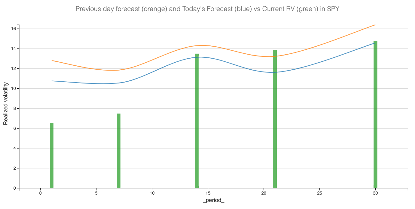 We can’t deny that this marks a significant improvement from last week, when monthly realized volatility flirted with the 16 handle, and the forecast remained at 18. With this week’s forecast down to 14, and assuming nothing substantial emerges from the Fed press conference or the earnings reports from major tech players, we could see a return to more favorable market conditions for volatility sellers.