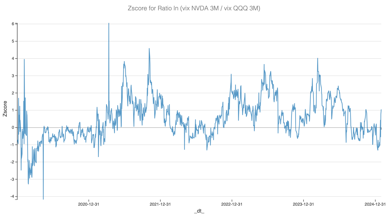 There’s a world where you sell expensive NVDA strangles and use the proceeds to buy some cheap tails in QQQ—then wait and see. If you truly believe an NVDA crash can happen in isolation, without rippling through the QQQ, you can have a good laugh at our expense. Otherwise, the widening spread between the two deserves your attention.