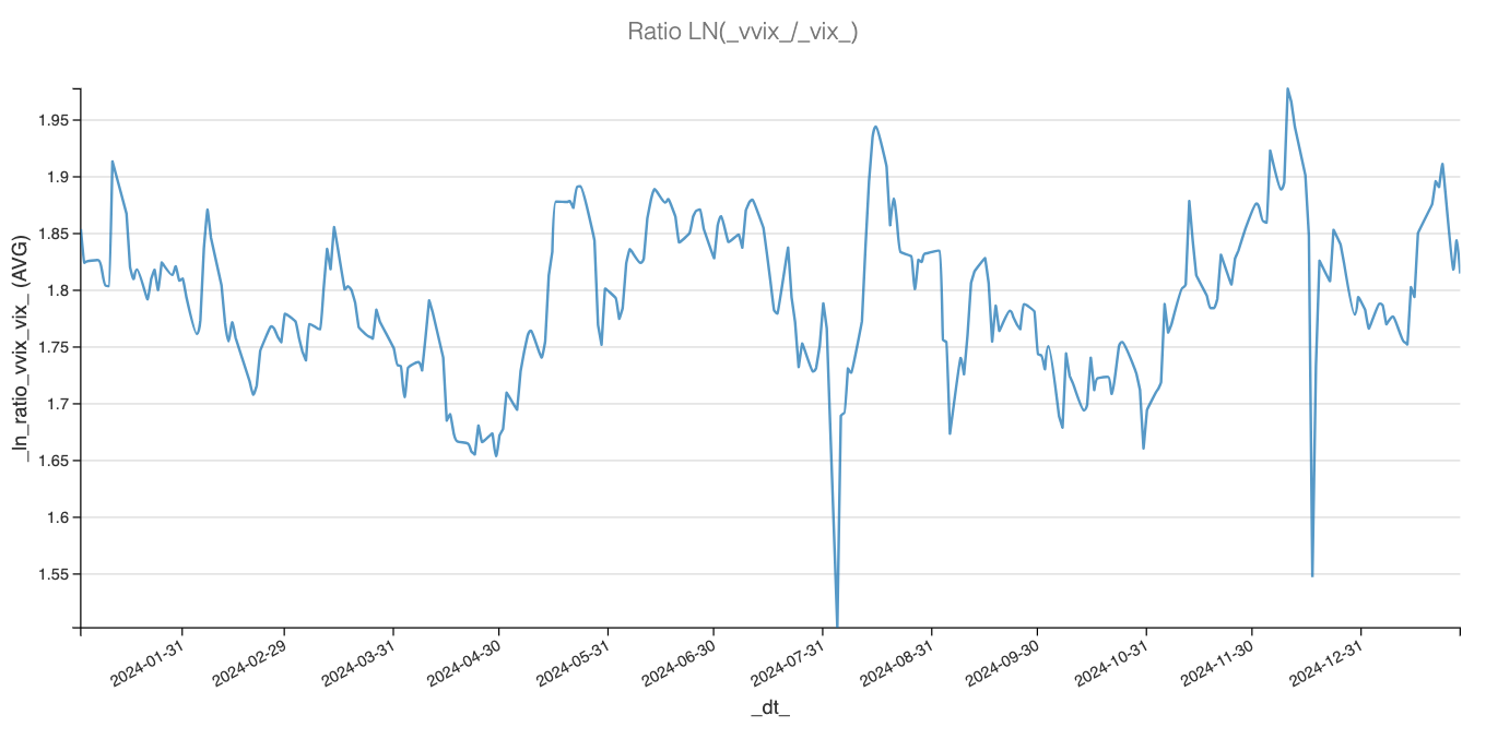- Since August 2024, a VVIX reading of 100 is barely the 40th percentile.