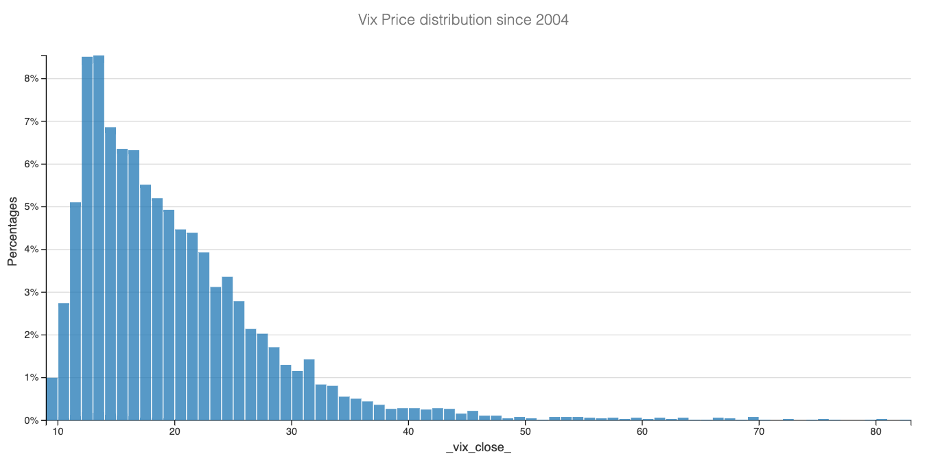 Let’s take a concrete example—if I told you that the VIX closed at 16.43 this week, your immediate conclusion would likely be: business as usual, no matter what political shenanigans the powerful are entangled in. And that would be a perfectly reasonable take—when you look at the VIX distribution over the past 20 years, this level is a complete nothing burger.