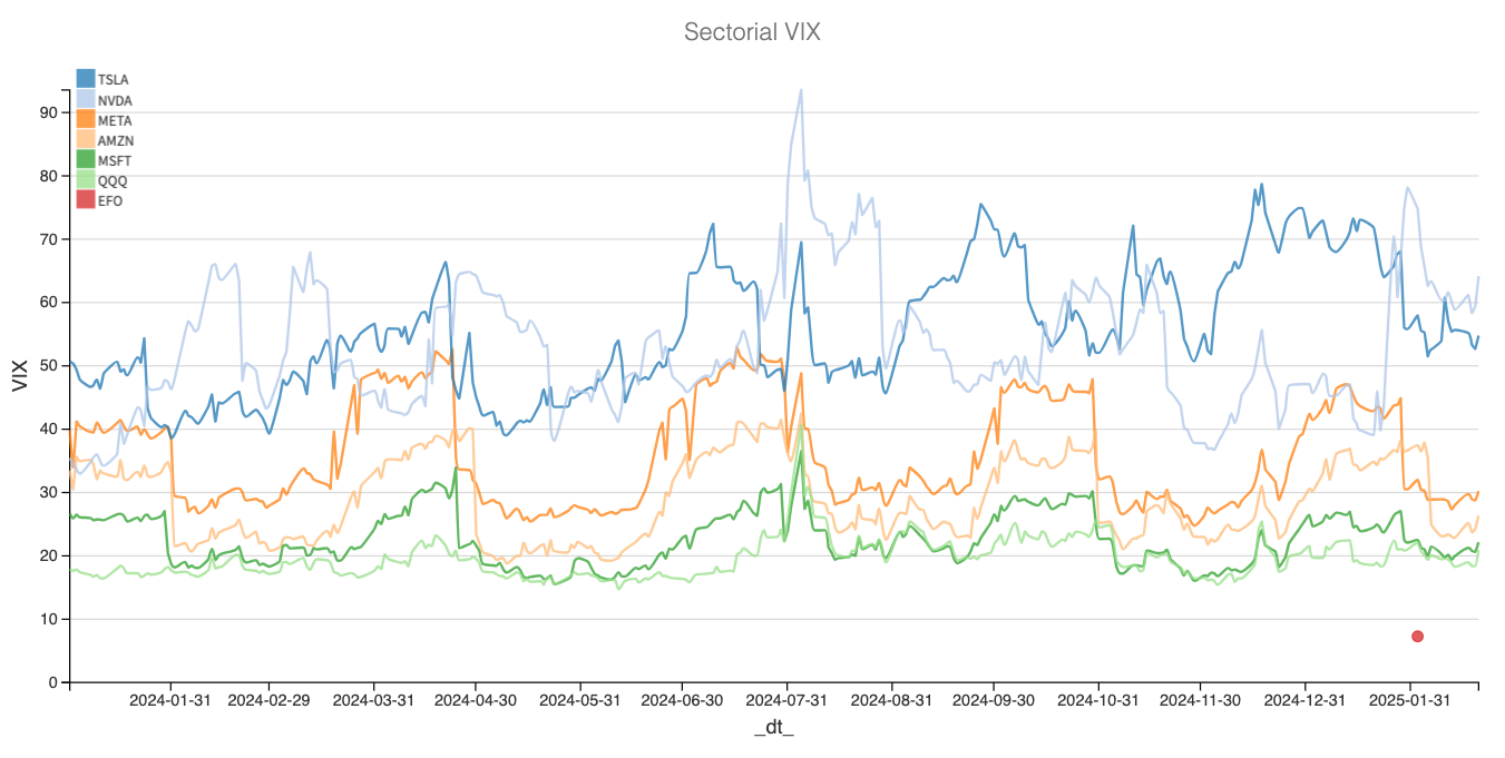 From a volatility perspective, despite earnings being right around the corner, the implied volatility hasn’t returned to the highs we observed back in January after the DeepSeek headlines. The current distortion seems very much concentrated in the front week, suggesting that the market isn’t pricing in sustained turbulence beyond the immediate earnings window.