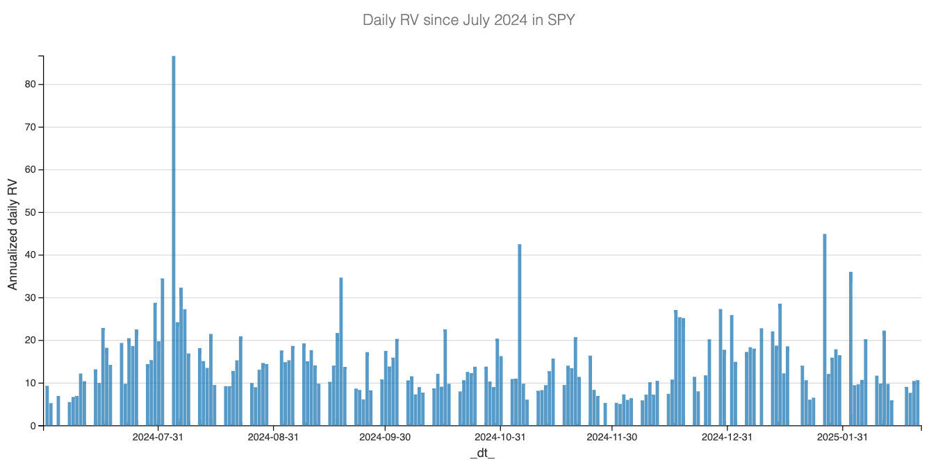What happened, you ask? On the surface, nothing obvious. Even the realized volatility on Friday was relatively tame for such a significant move down.