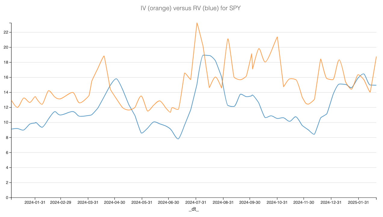 As this chart shows, Friday’s close has opened the door for what could be a meaningful return of the VRP—at least, that’s what we hope. It’s still too early to tell whether we’ll see a resurgence on the same scale as what we experienced before the U.S. election. Back then, selling volatility was almost too easy: you could comfortably sell at 17–19% implied volatility while the realized volatility hovered closer to 10%. It was such smooth sailing that we managed a record streak—selling puts for over three months without a single loss.