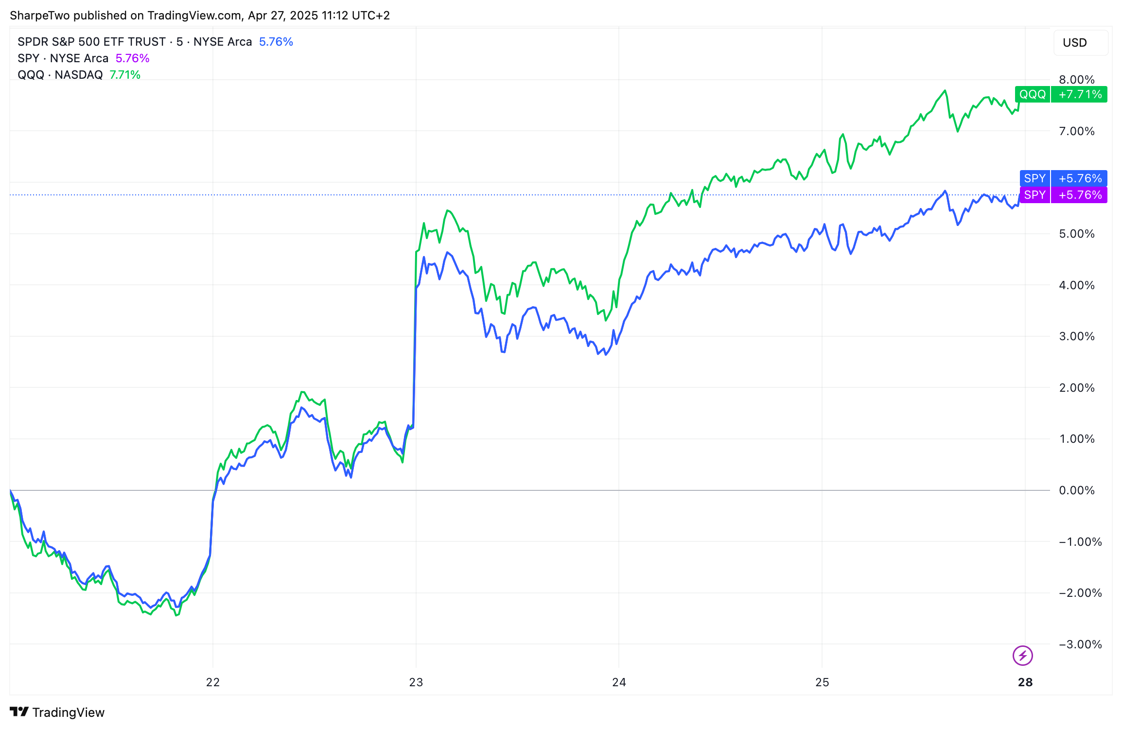 If last week the market showed some hesitation on the direction to take, it left no doubt about where it's heading now — after three weeks of chaos, the S&P 500 closed the week above 5500, adding almost 6%, while the Nasdaq jumped close to 8%, and the VIX dropped back below the 25 mark, closing at 24.89.
