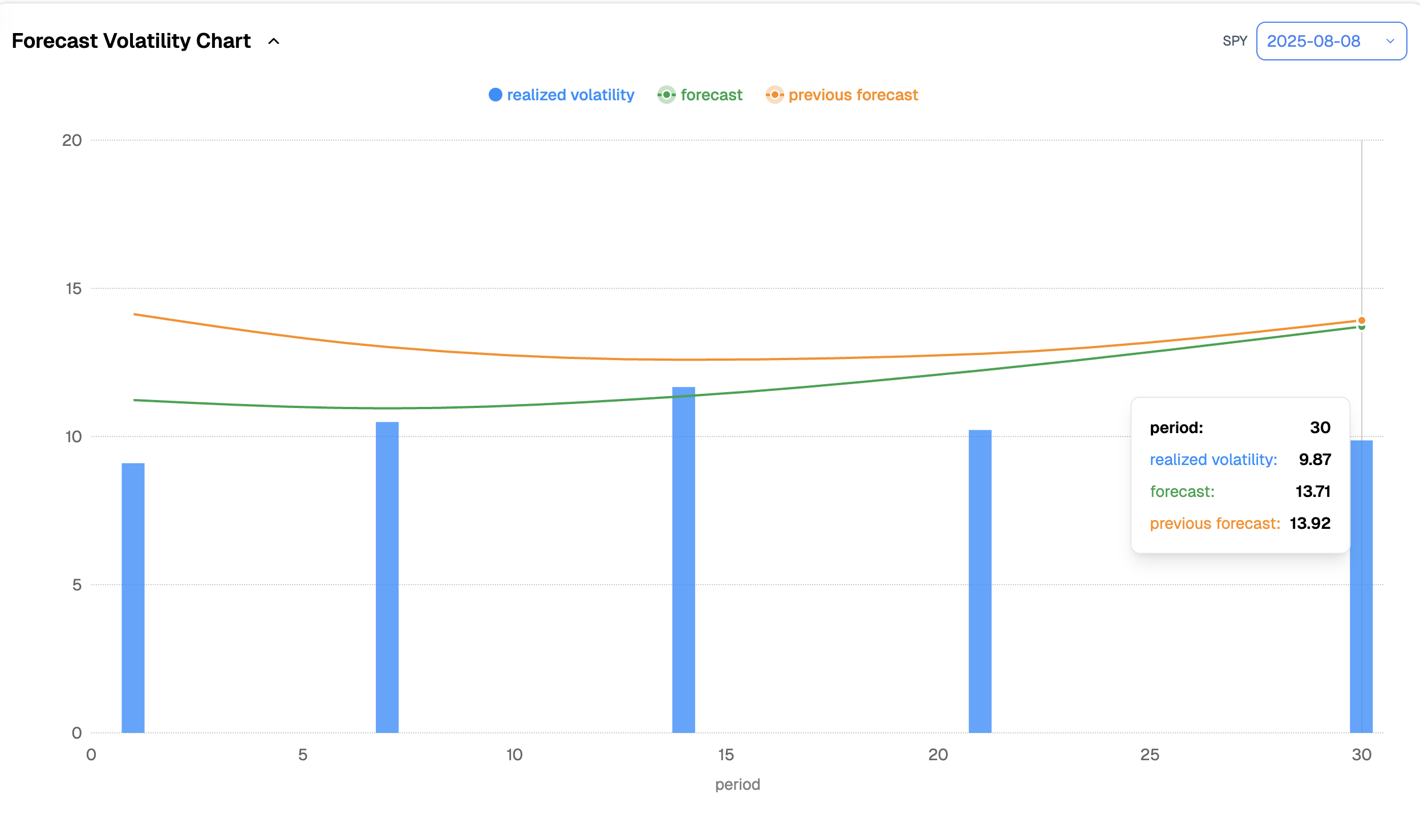 That is the context and the conjecture. From the data side, even after another quiet week, our models still see realized volatility settling around 14 over the next 30 days.