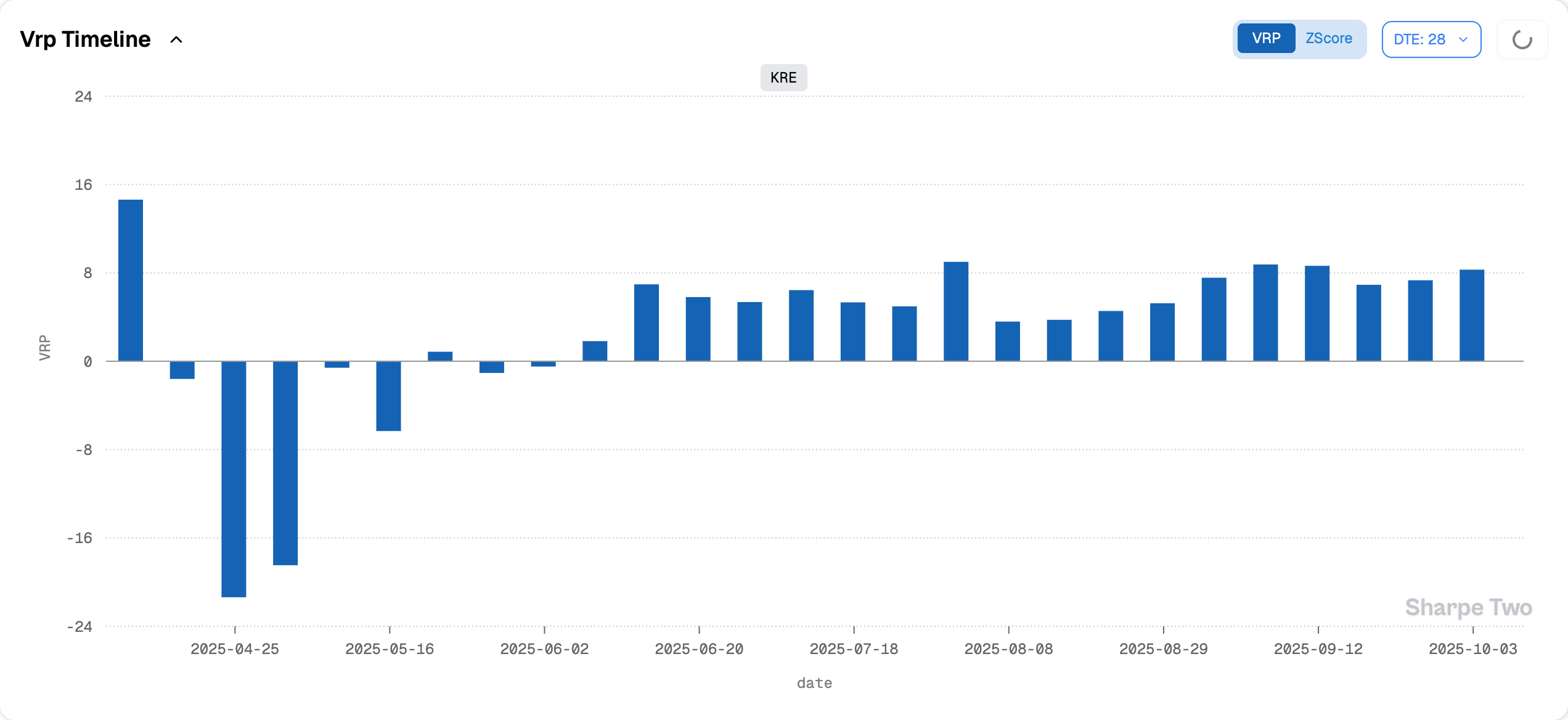 A 100% VRP in SPY is a first for us. We live and breathe forecasts and probabilities, and while a 63% forecast probability is not quite as high as we would like, we have never seen anything like this: the market is paying twice the realized movement — 16.2% implied versus 8.1% realized.