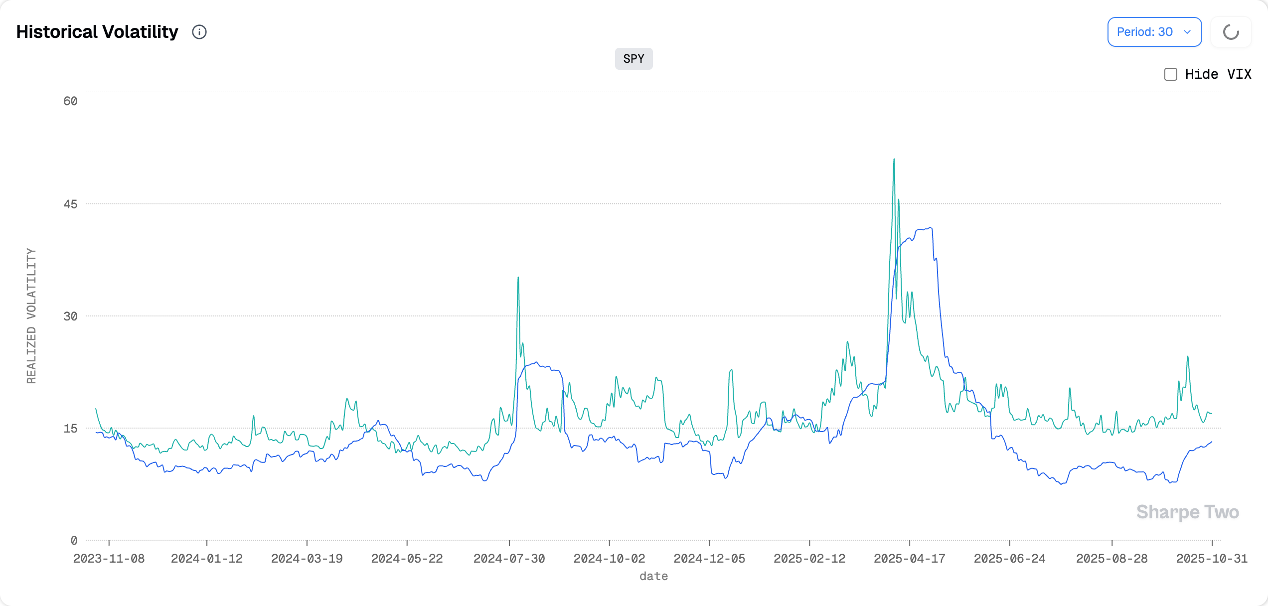Realized volatility over the last 30 days now sits at 13.22%, and the margin for error when selling implied volatility grows thinner by the day. This is especially true if we expect more movement in the coming weeks before Thanksgiving. The government remains shut, NVDA earnings are still ahead, and given how sharply VIX spiked as we approached big tech earnings last time, it would not be far-fetched to see realized volatility grind another point or two higher from here.