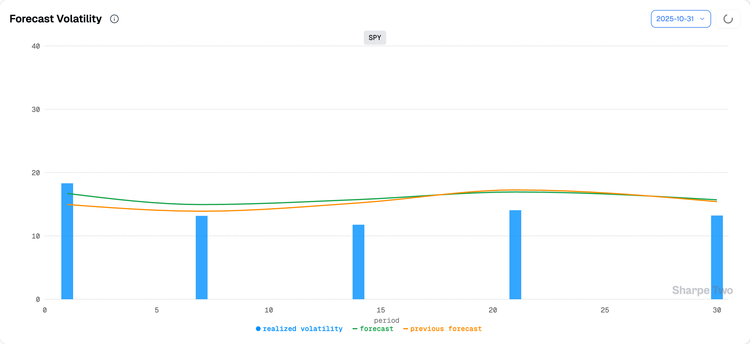 Our forecasts currently point to realized volatility around 15.5%, and one can see why selling 16 is risky or at the very least, much riskier than when we could sell 16 while realized sat at 10 and was expected to rise toward 12.
