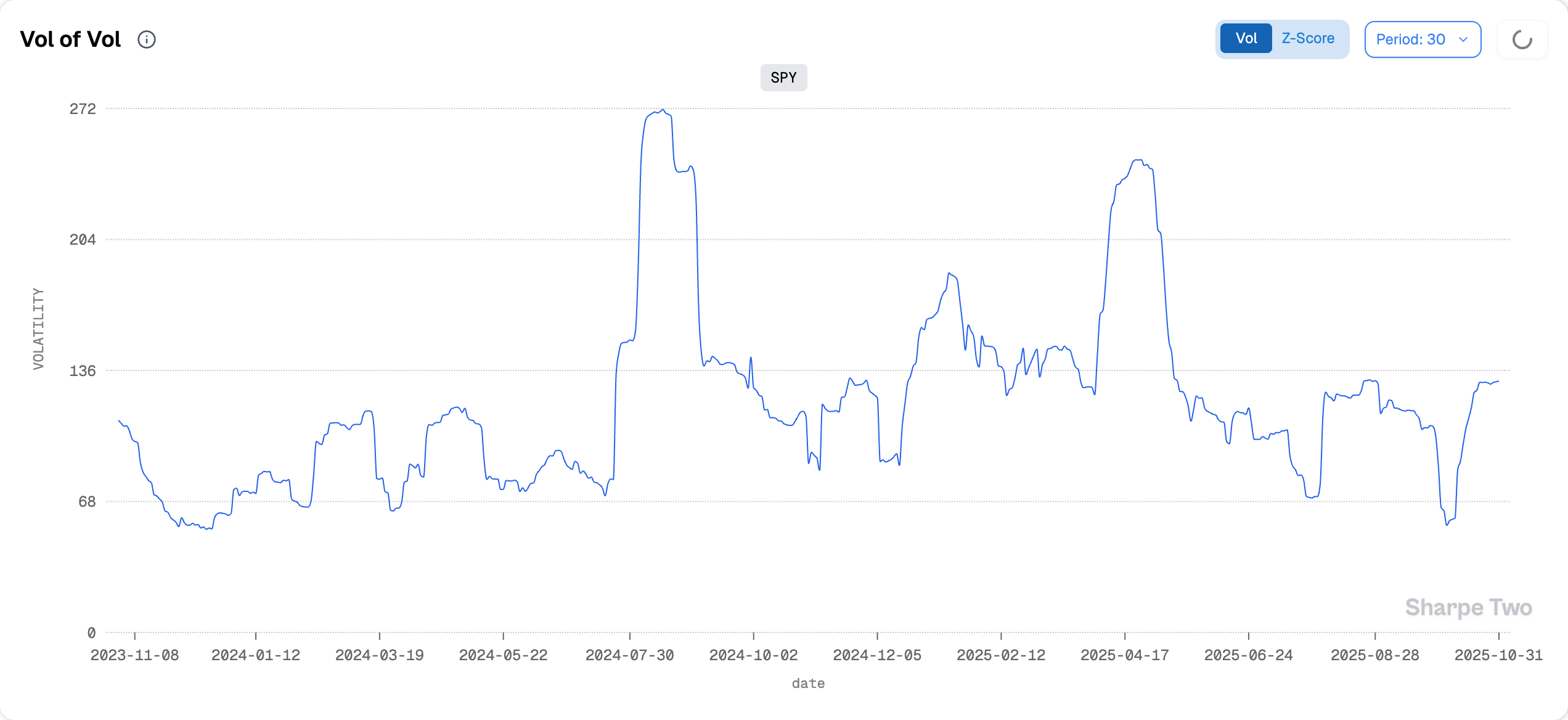 But volatility-of-volatility has not accelerated beyond what one would normally see in a regime gearing up for a period of heightened stress. In fact, we would not be surprised to see it slowly retreat as the year winds down and we head toward Thanksgiving and the Christmas break.
