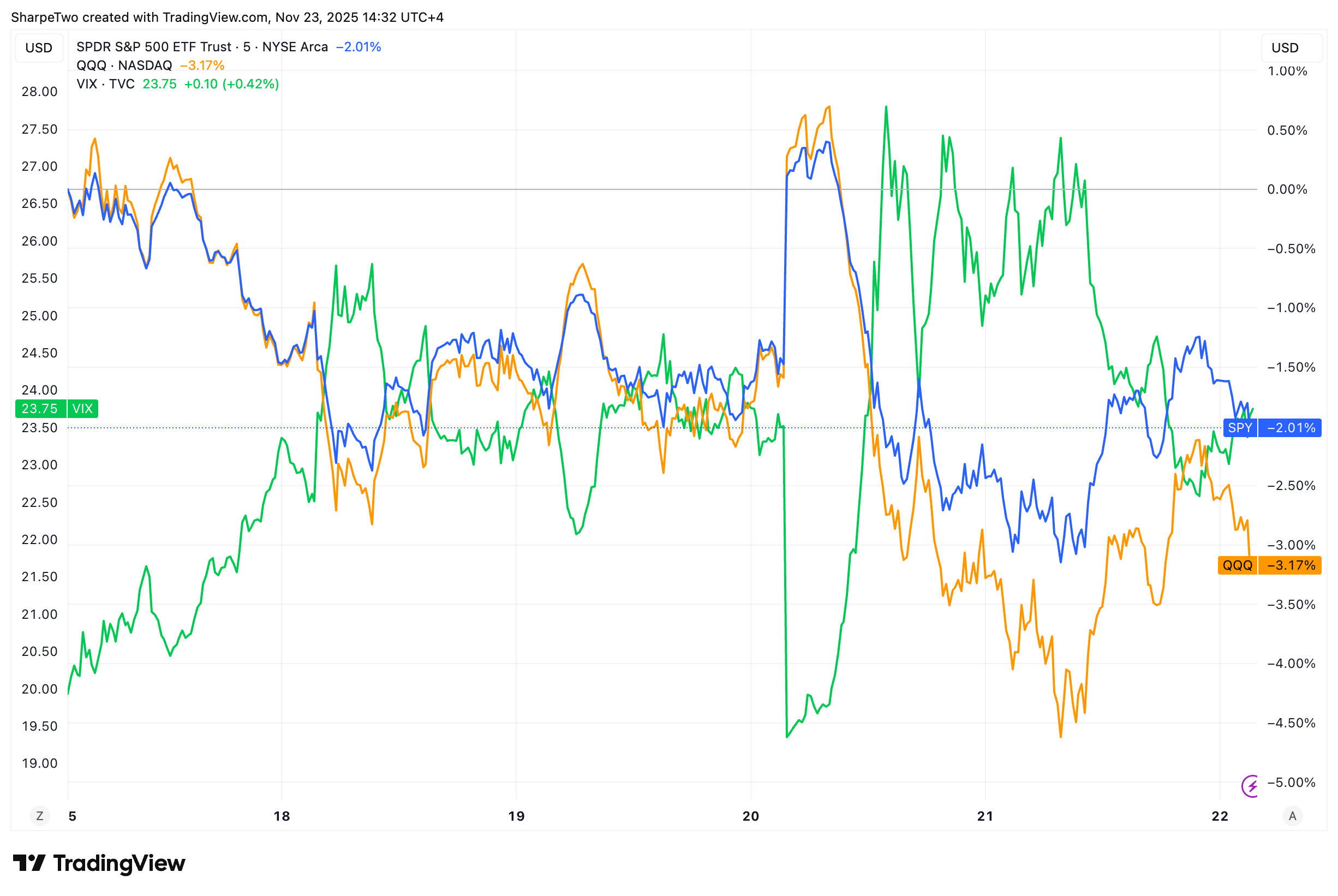 Apart from that? NVDA posted another blockbuster of a quarter, once again proving that the transformation underway is not slowing down. Like many in the marketplace, we initially thought this would be enough to diffuse the volatility of the last six weeks. Especially after learning on Thursday before the open that the US economy added 119k jobs in September. But que nenni. On Thursday we witnessed the kind of reversal that gets the entire marketplace riled up and financial institutions excited (absolutely not incentivized at selling you expensive options contracts, by the way…). From up 2 percent to down 1 percent, it did not take much to bring back memories of April last year.