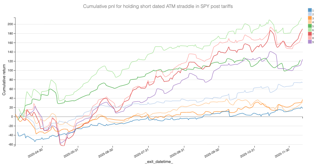 Translation: selling an ATM straddle in SPY and holding it to expiration was a particularly prolific trade, especially in the 6 to 8 dte bucket.
