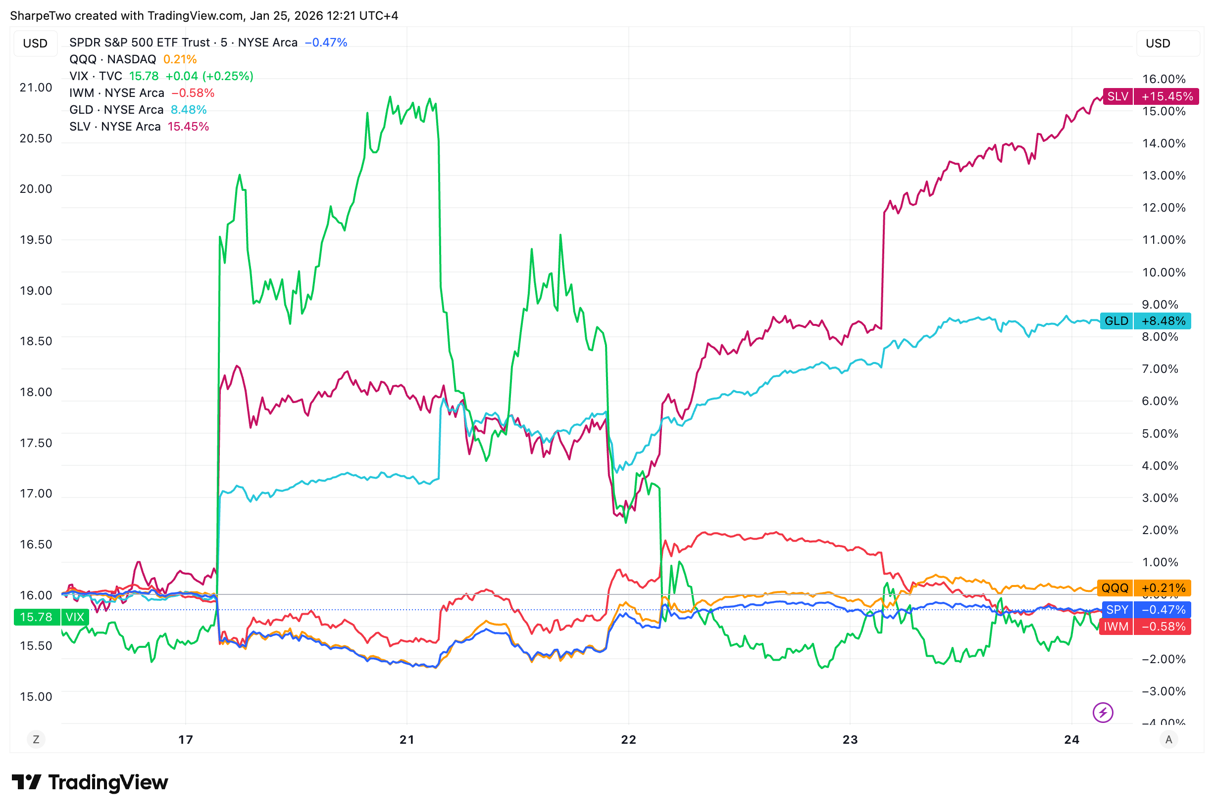 In 2026, however, there was no such beating in the stock market. The main indices were mostly flat, with the S&P 500 losing slightly less than half a percent and the Nasdaq gaining about the same. The VIX closed mostly unchanged, sitting right on the 16 handle.