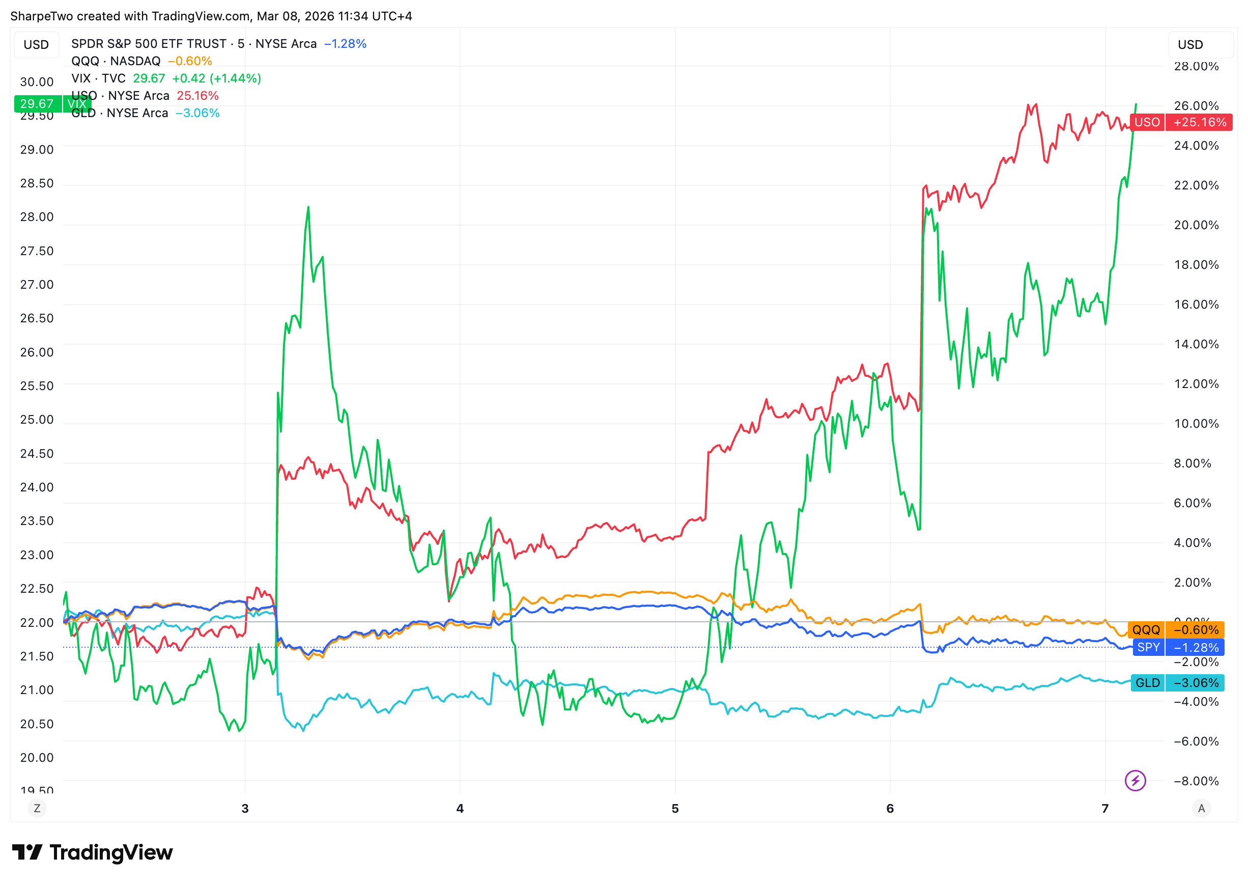 What a week it’s been. Despite holding up fairly well early in the week as the markets were hoping for a quick and swift resolution, the lack of clarity and obvious second part of the planned attacks against Iran soured the mood. The results are pretty gloomy: the SP500 lost a little bit more than 1% while the QQQ limited the damage to just over 0.5%.