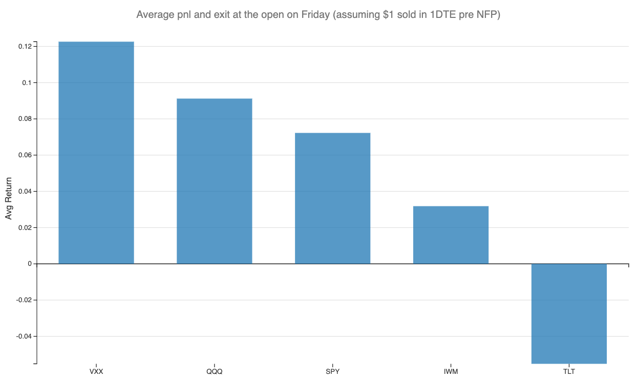 Now, if you wanted to capture only the NFP effect, a sensible thing to do would be to exit right at the open, as the uncertainty driver would now be behind us. Let's see what that would mean from a return perspective.