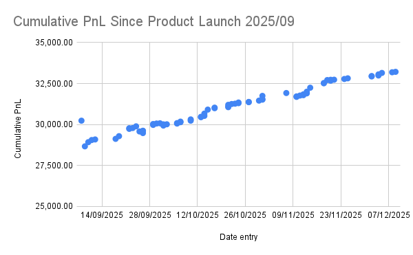 So far, it matches what we observed in the backtests. It has proven robust to regime changes like those seen in October and November, and while a true tail event would still be needed to fully understand how it reacts, it already delivers where it matters most: it gives us back time to think when the market is stormy.