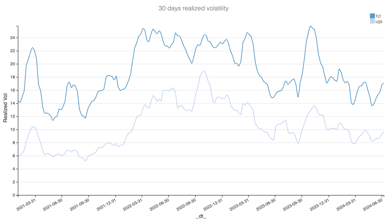 Before Q4 2021, when inflation wasn’t a hot topic, the realized volatility in LQD was very stable, mostly hovering around 6%.