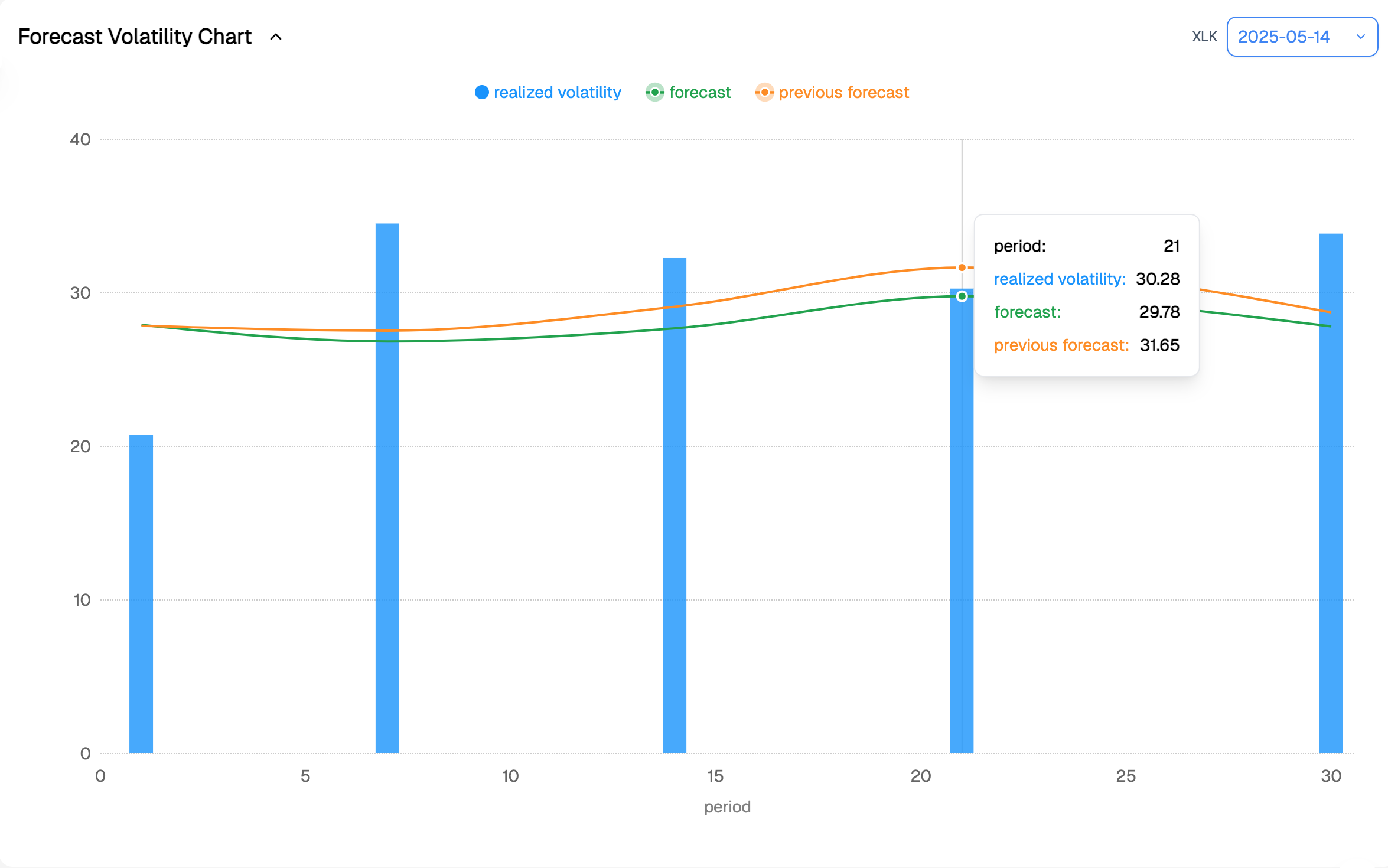 Speaking of data, let’s take a look at realized volatility in XLK. As expected — after spiking to levels not seen since the COVID era — it is now melting like butter under the sun. Like much of the market, it is pointing to a regime shift that is getting harder to ignore.