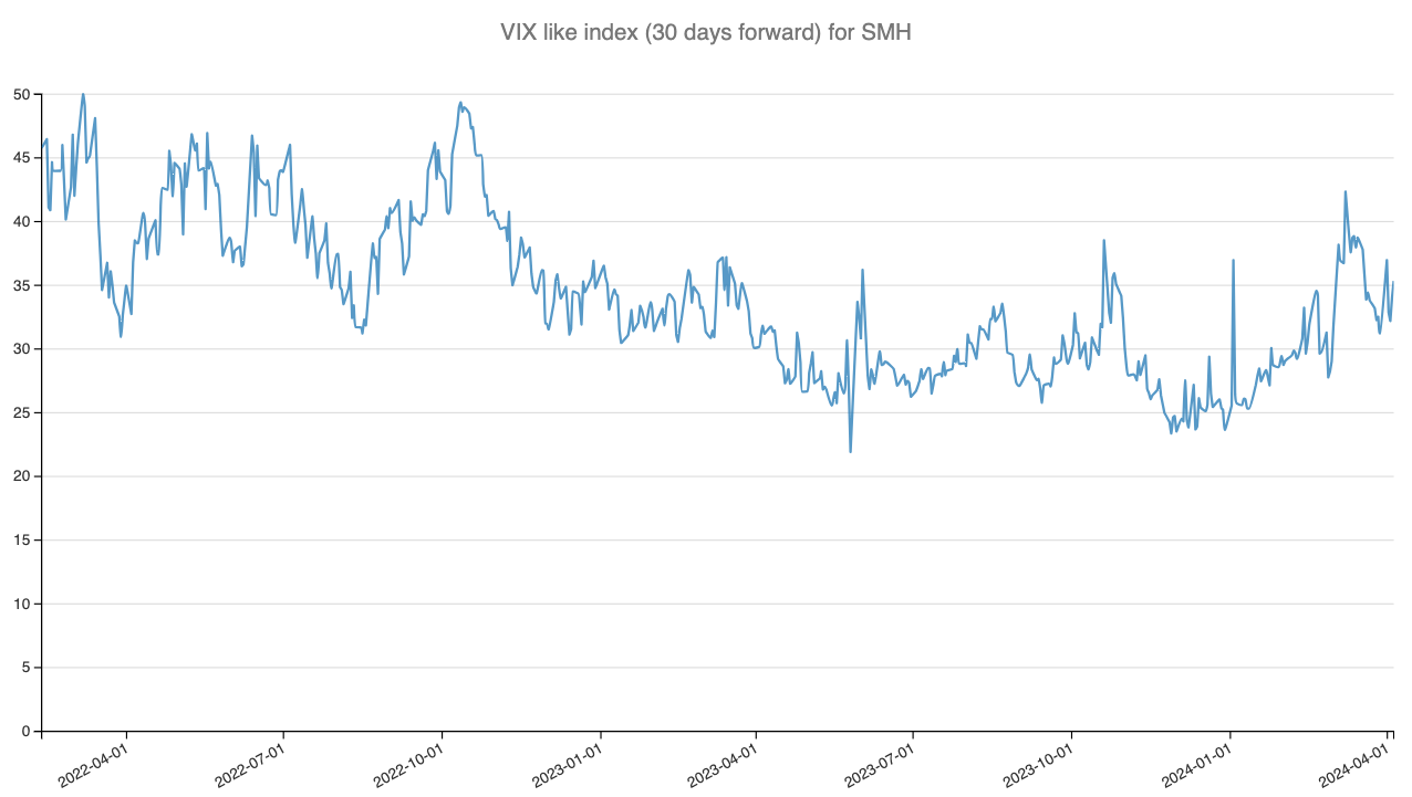 Let's start by examining a reconstruction of the VIX index for SMH over the past two years.