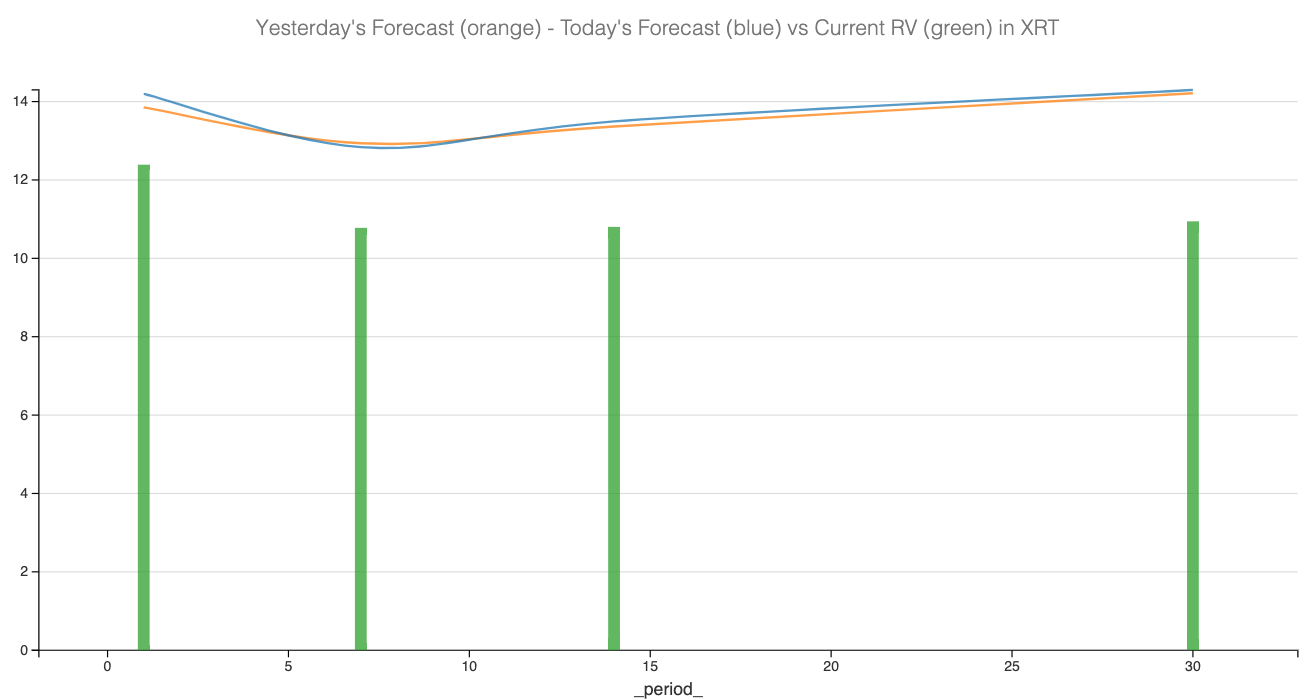 Meanwhile, we exited the short straddle in XRT we talked about last week right at the close. We're still holding on to the short vol in VXX from two weeks ago, but it might be time to cut it loose. Hopefully, we can manage a scratch between today and tomorrow.