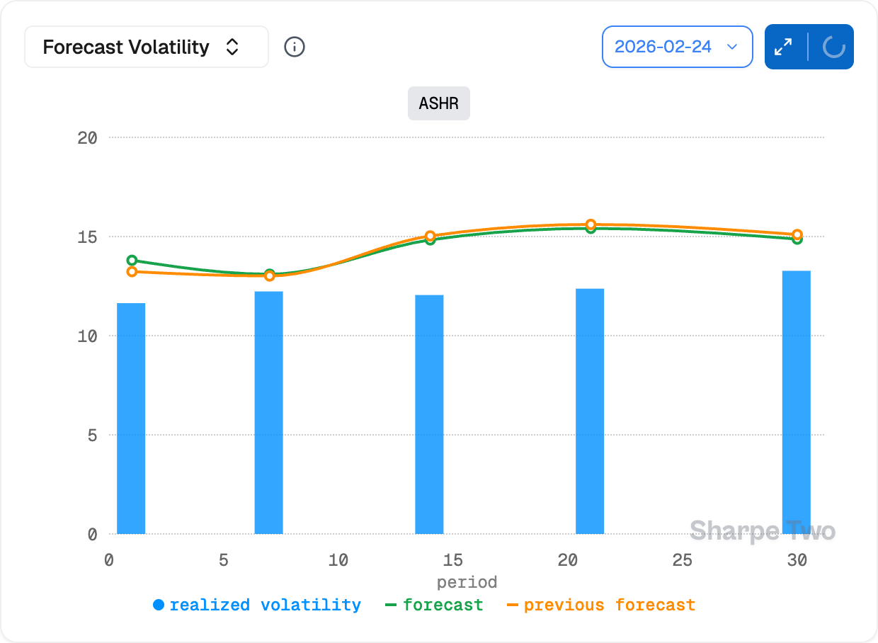 And while it increased a few points from the lows of 11.5 to almost 13.5 at the moment, nothing screams a potential explosion of risk over the next few weeks. One will have to keep an eye on the geopolitical situation: if the US administration decides to increase the heat ahead of the meeting, you could observe a renewed sense of agitation in ASHR. While this is a possibility, we also do not think it would contradict what our current realized volatility forecast shows.