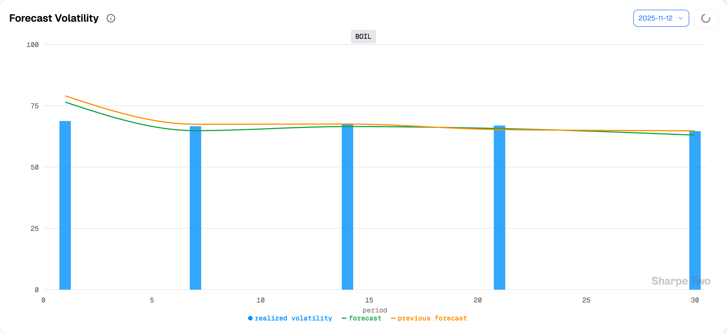 As it stands, we do not anticipate things to change drastically over the next two to four weeks. But, as always, caution is warranted: all it takes is one announcement to send the market rushing to accumulate exposure and for BOIL to suddenly explode higher. That is why we remain on the cautious side and still see room for a potential 5 to 10 point rise in realized volatility over the next month, running against this model’s view.