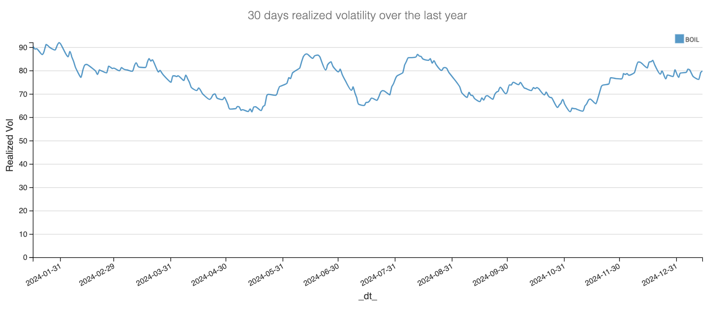 In the meantime, we’re diving into a trade opportunity in BOIL, the ETF that offers investors exposure to three times the performance of the natural gas market. We successfully sold some calls a couple of weeks ago as the skew tilted heavily toward the call side. Today, however, we’re shifting our focus back to the good old variance risk premium (VRP).