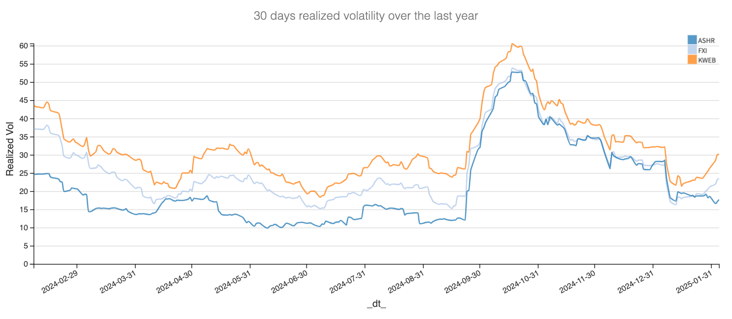 And while volatility has started creeping back up in FXI and KWEB—thanks, once again, to the latest developments in the tech space—ASHR remains largely ignored by investors.