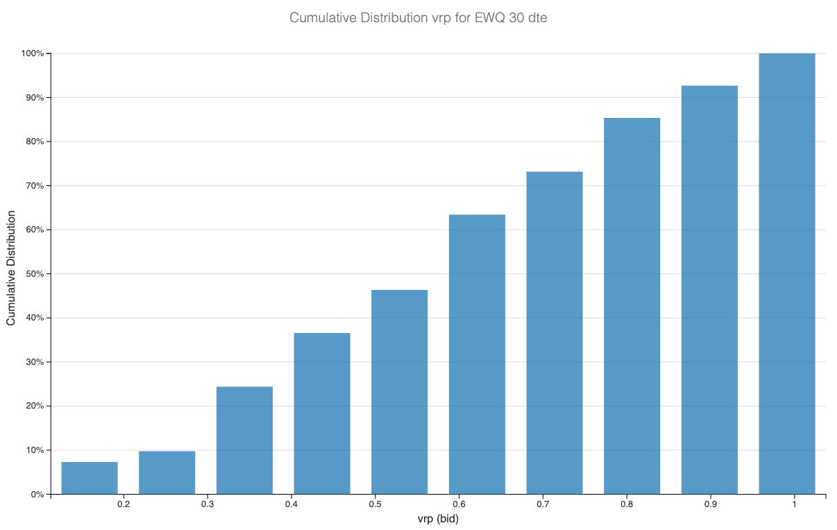 As usual, we will maintain our market neutrality and examine the options data to see if they may exaggerate what will likely happen in the next few weeks. Let’s review the realized volatility in EWQ.