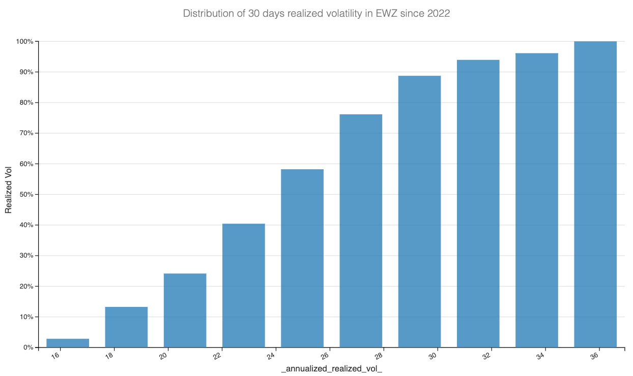 This isn’t our primary focus at Sharpe Two, but the decoupling is noteworthy. Now, let’s look at the volatility realized by EWZ over the past few years.