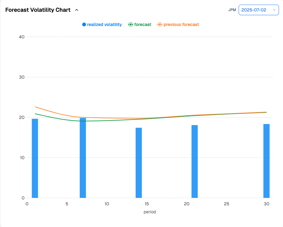 There has, of course, been recurring chatter about the astronomical US debt levels and the weak performance of the USD. But for now, none of this is alarming investors. From a realized volatility forecast perspective, we do not expect much to change in the weeks ahead.