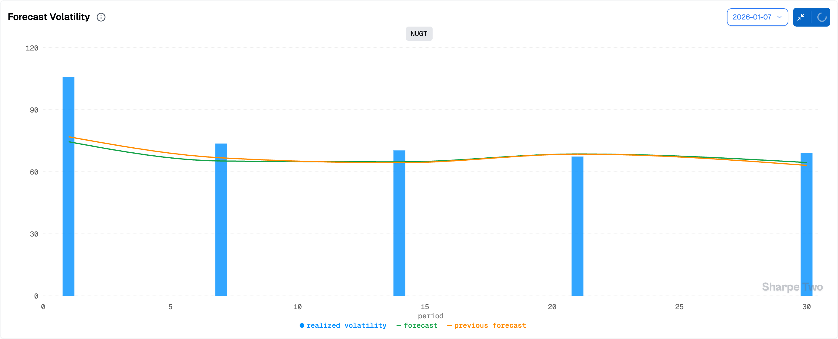 Let us take a look at our expectations for realized volatility over the next month: