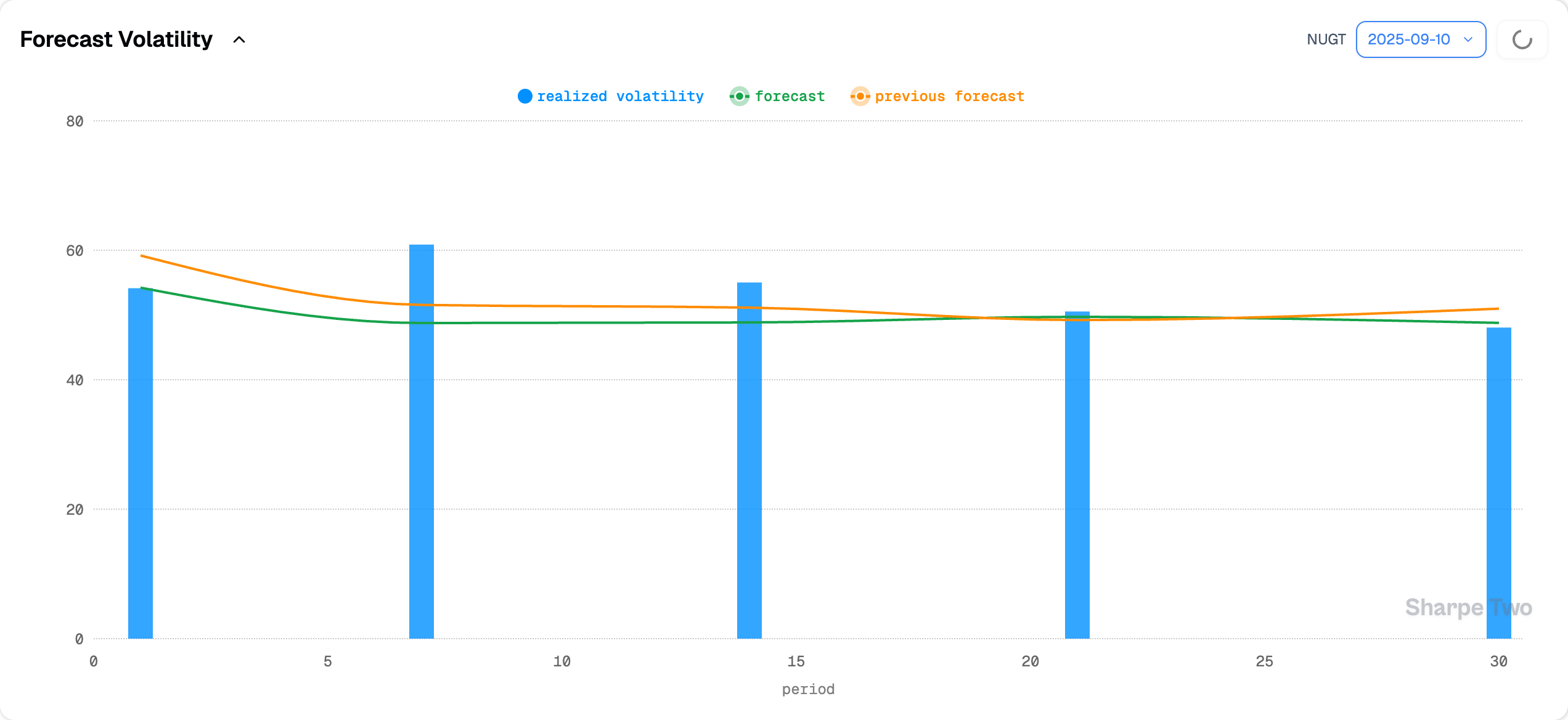 Before moving on, let us check our forecast for realized volatility over the next month.
