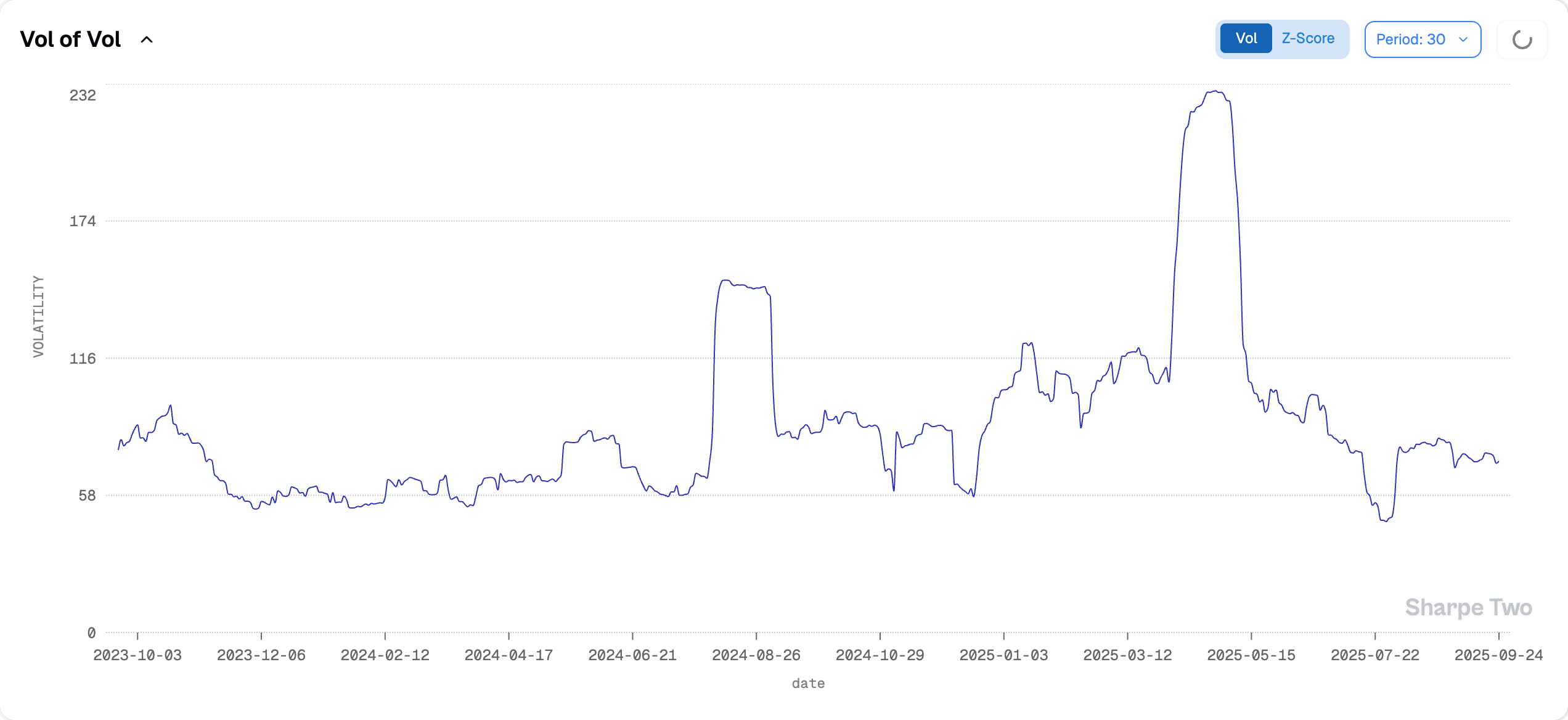Post-tariffs, realized vol has basically evaporated from the main U.S. indices. Sitting this low in mid-September is a pretty strong tell for how the rest of the year shapes up. We stay clear of direction calls, and we will again: all we are saying is this does not look like a market about to cough up 10% out of nowhere. And for those squinting hard to find trouble on the horizon (yes, “VIX up, stocks up” crowd—we see you), realized vol of implied vol is about as boring and well-behaved as it gets.