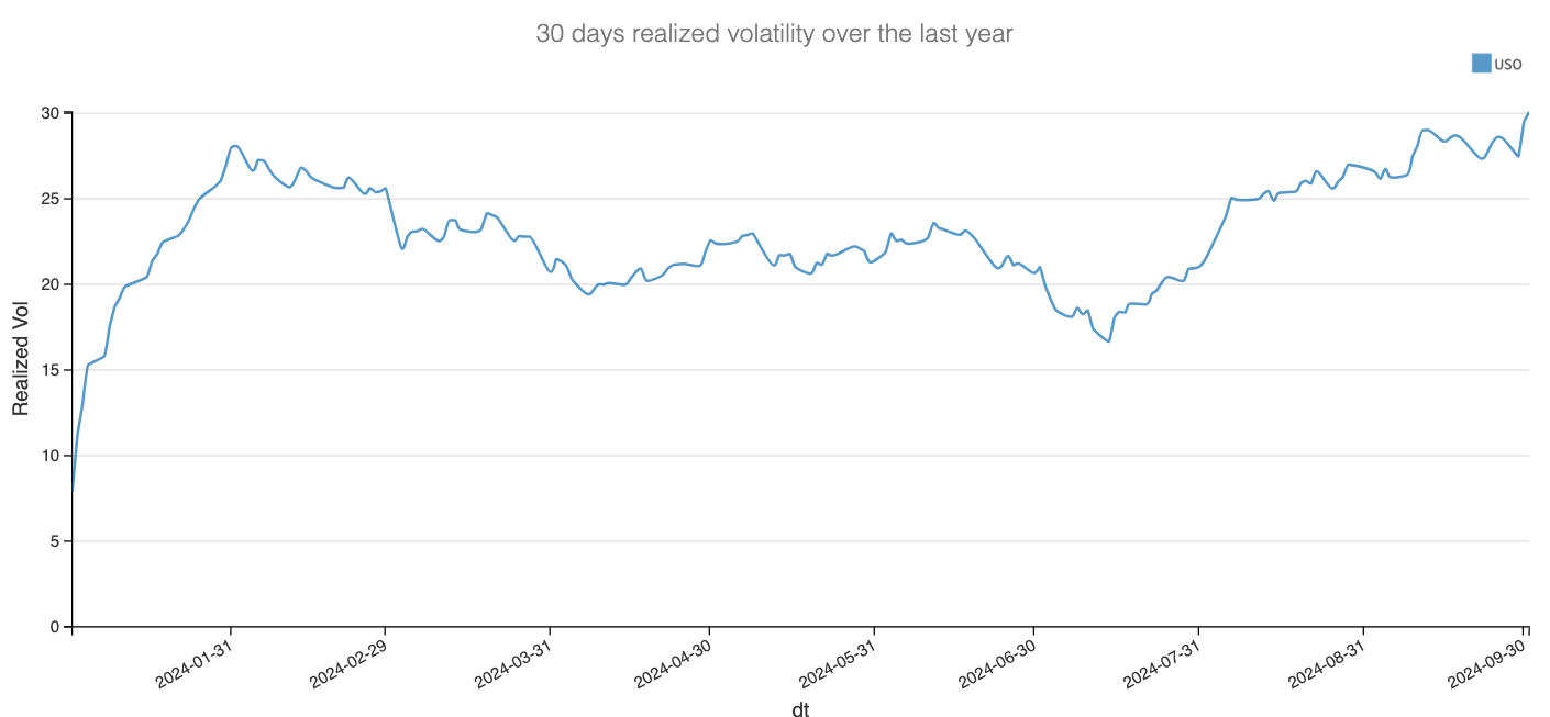 Yet, a $64 to $82 range isn't exactly tight, and this wide trading band has been well reflected in USO's realized volatility this year.