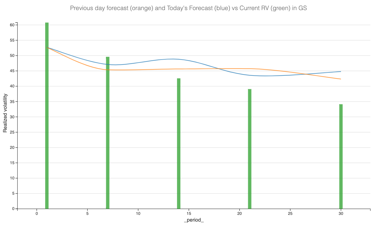 If we take a simpler view of realized volatility as a whole and project it over the next month, we get the following: