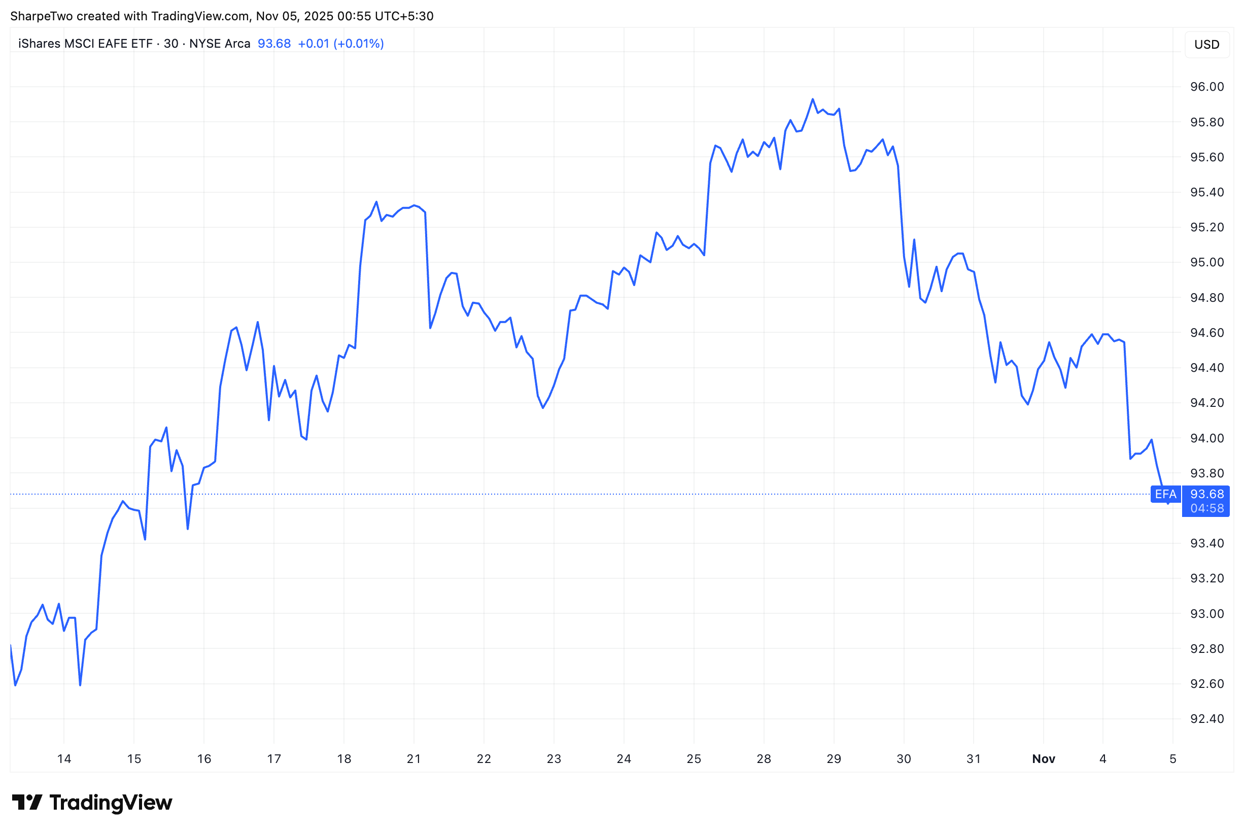 Two weeks ago, we brought you an opportunity in EFA, the ETF tracking international equities excluding American and Canadian markets. That came right after a bout of volatility in the S&P 500 options complex, which saw the VIX spike to 28 pre-market on October 16.