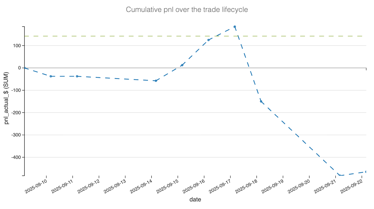 Let’s break down the actual PnL now—where the trade made money, and where it gave it back.