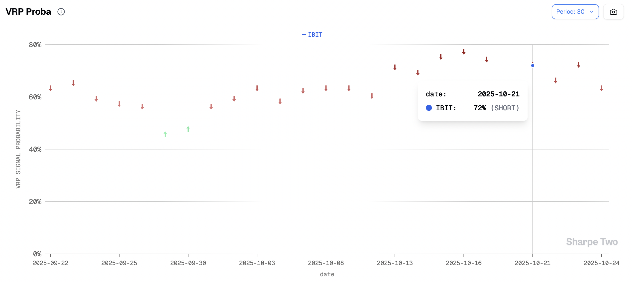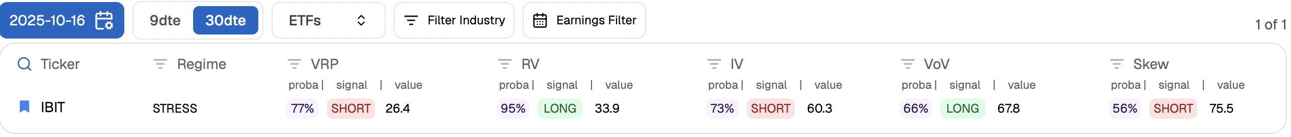 The following day, the probability of profiting from selling implied volatility versus realized volatility had risen to 77% — a perfectly valid cue to lean into mean reversion and sell more to an overly reactive market. In the end, once things calmed down, the edge played out as expected. We exited just a week after entering, helped by three factors: the absence of a sustained directional trend, realized volatility not climbing to dangerous levels, and implied volatility cooling off.