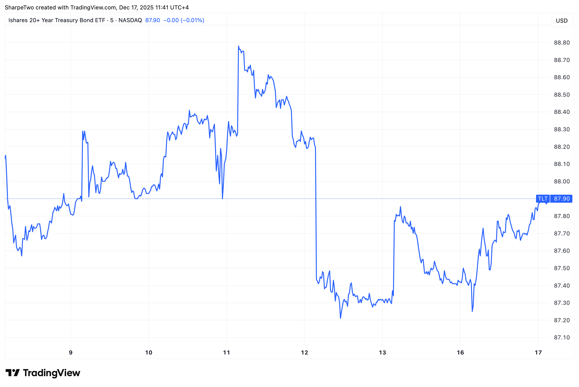 As usual, we did not delta hedge, which exposed us to path dependency. Still, no real surprise here. Rates wiggled around, down during Powell’s press conference and back up the following day, but TLT itself stayed anchored around the 88 strike. As a consequence, delta never really became an issue for the position.