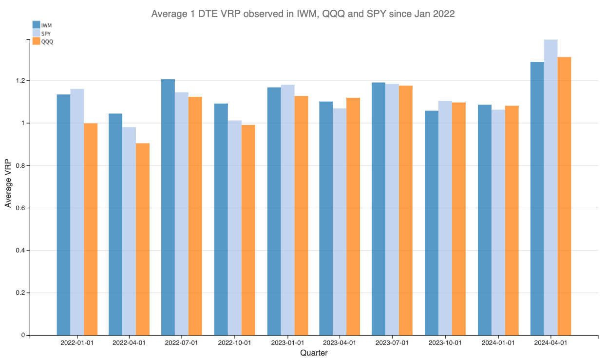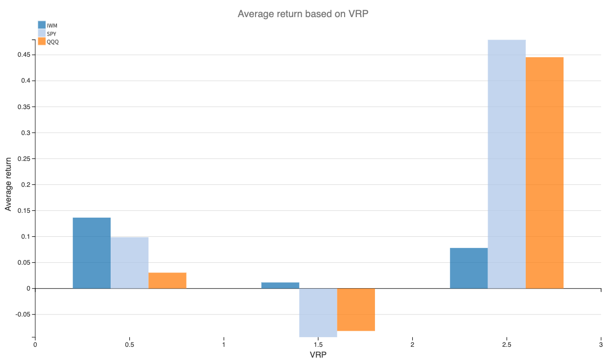 With IWM often having the highest implied volatility of the three, we can assume that it also has the highest VRP most of the time.