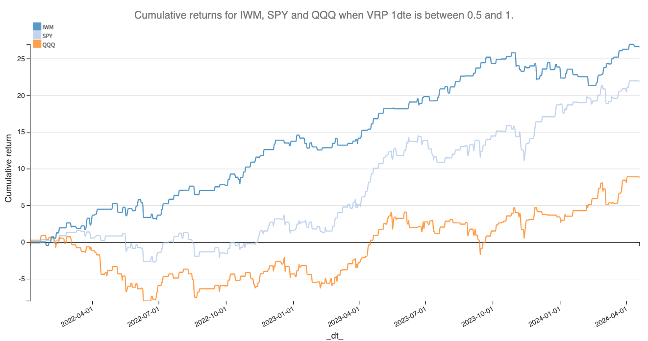 Let's look at the cumulative returns function when the VRP is between 0.5 and 1.