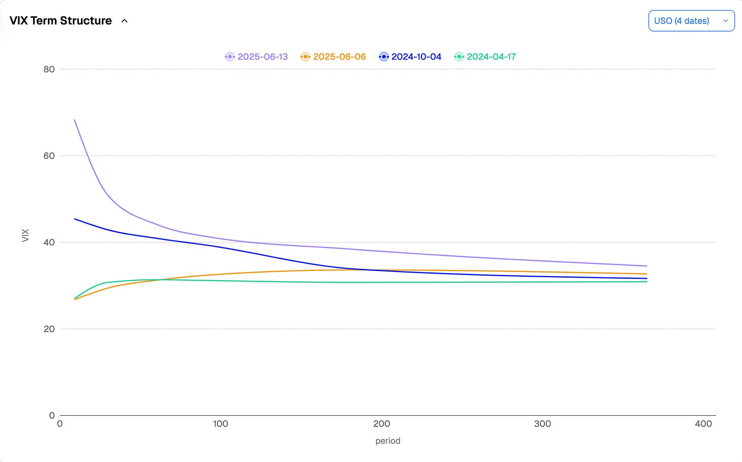 Oil surged nearly 7% on the news, and it is likely volatility will linger longer in energy-related assets than in traditional equities. Looking at the term structure in USO, it inverted sharply—unsurprisingly—on the back of the headlines.