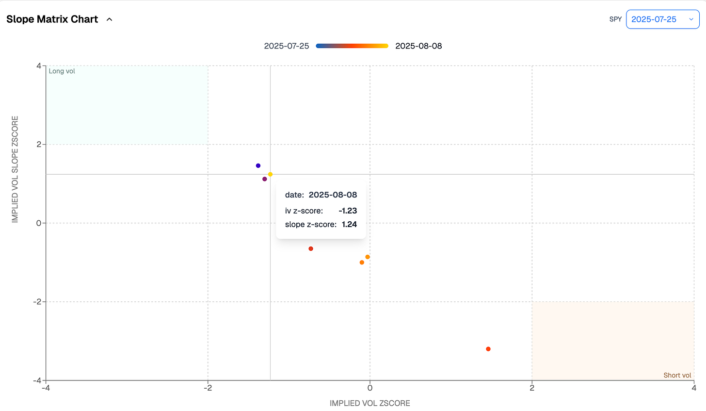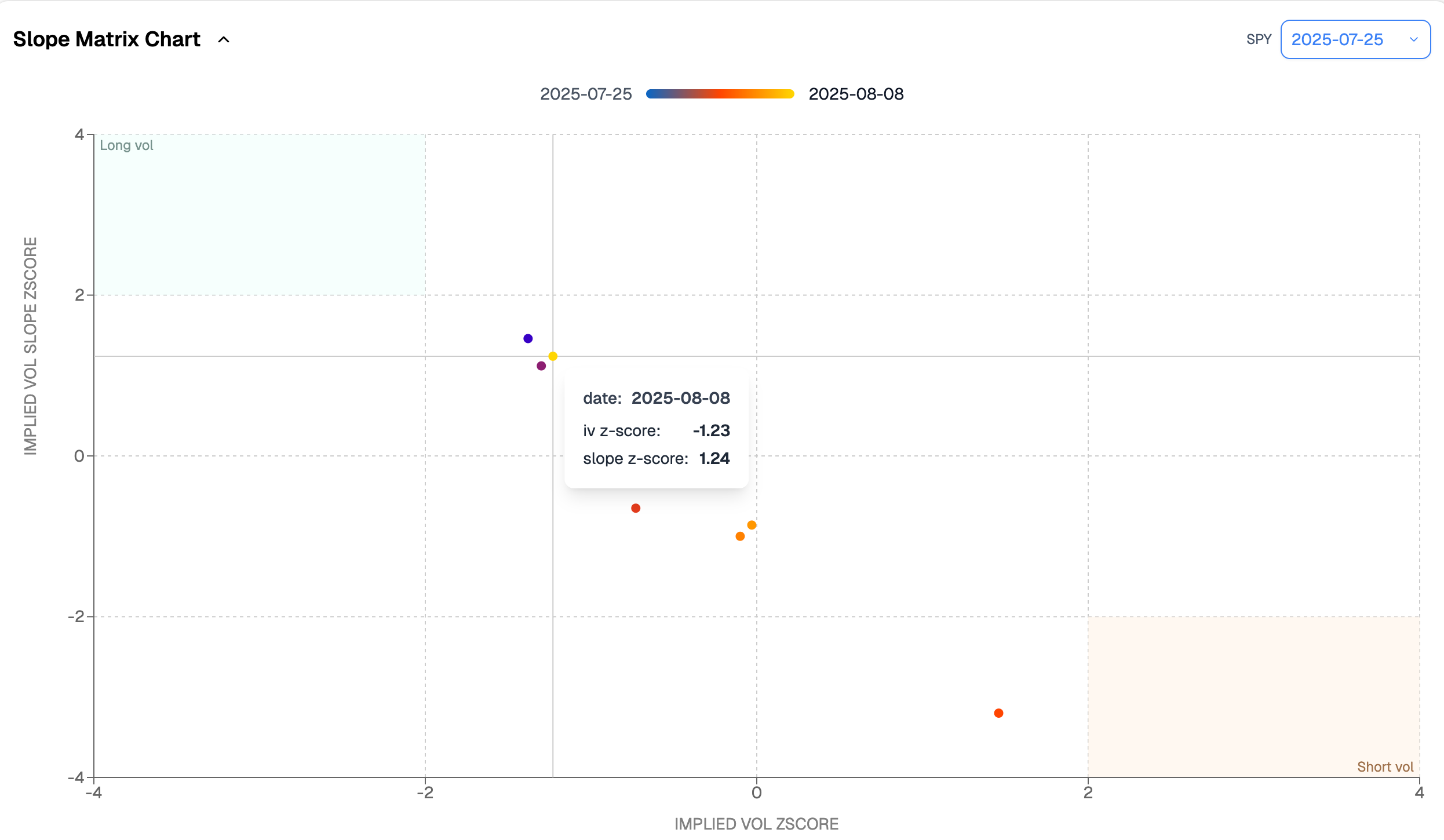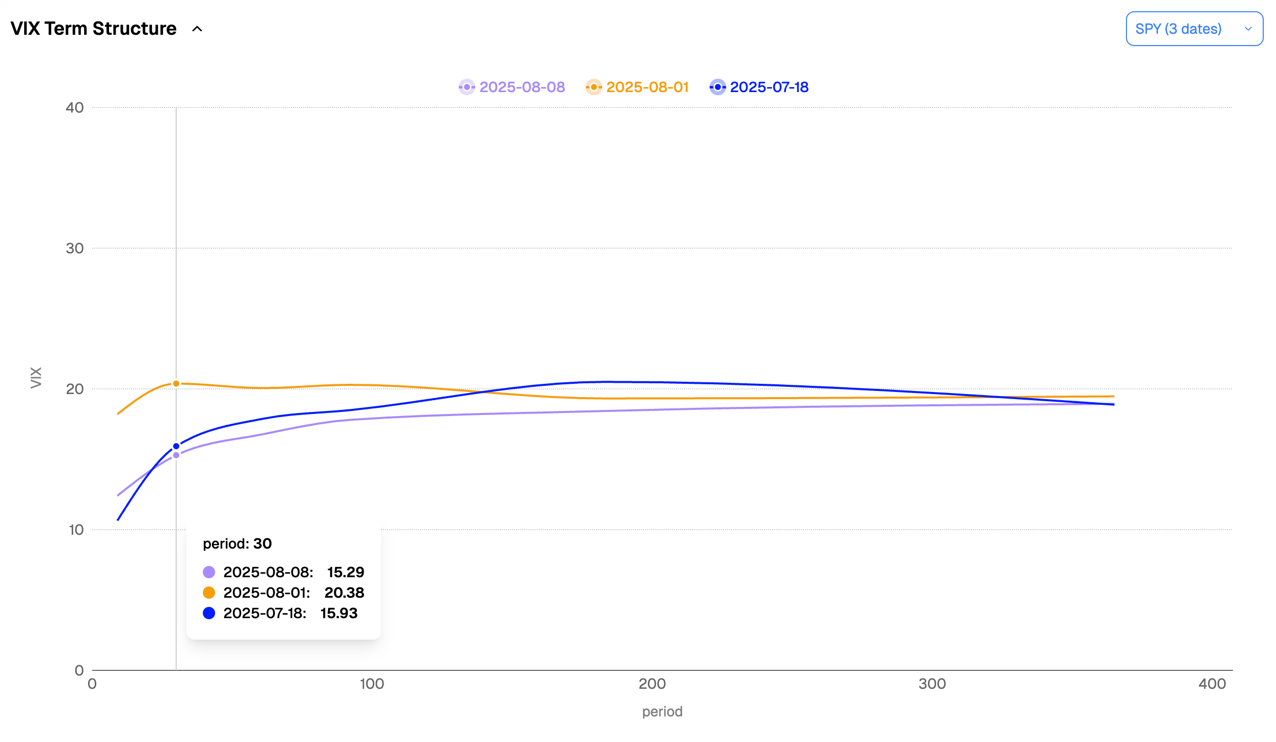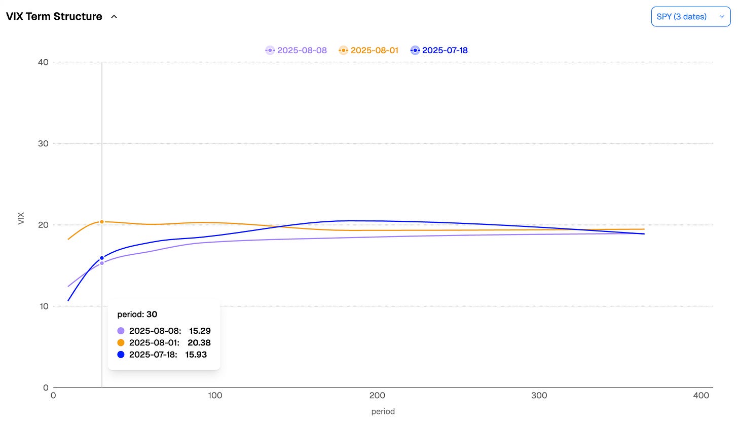 The contango in SPY options is pronounced — hard to look at this and think the market is worried. But when you put that steepness in the context of how low volatility is, we are not in long-vol territory yet… still, it is worth watching for complacency early this week, and maybe picking up a few long-term hedges while they are cheap.