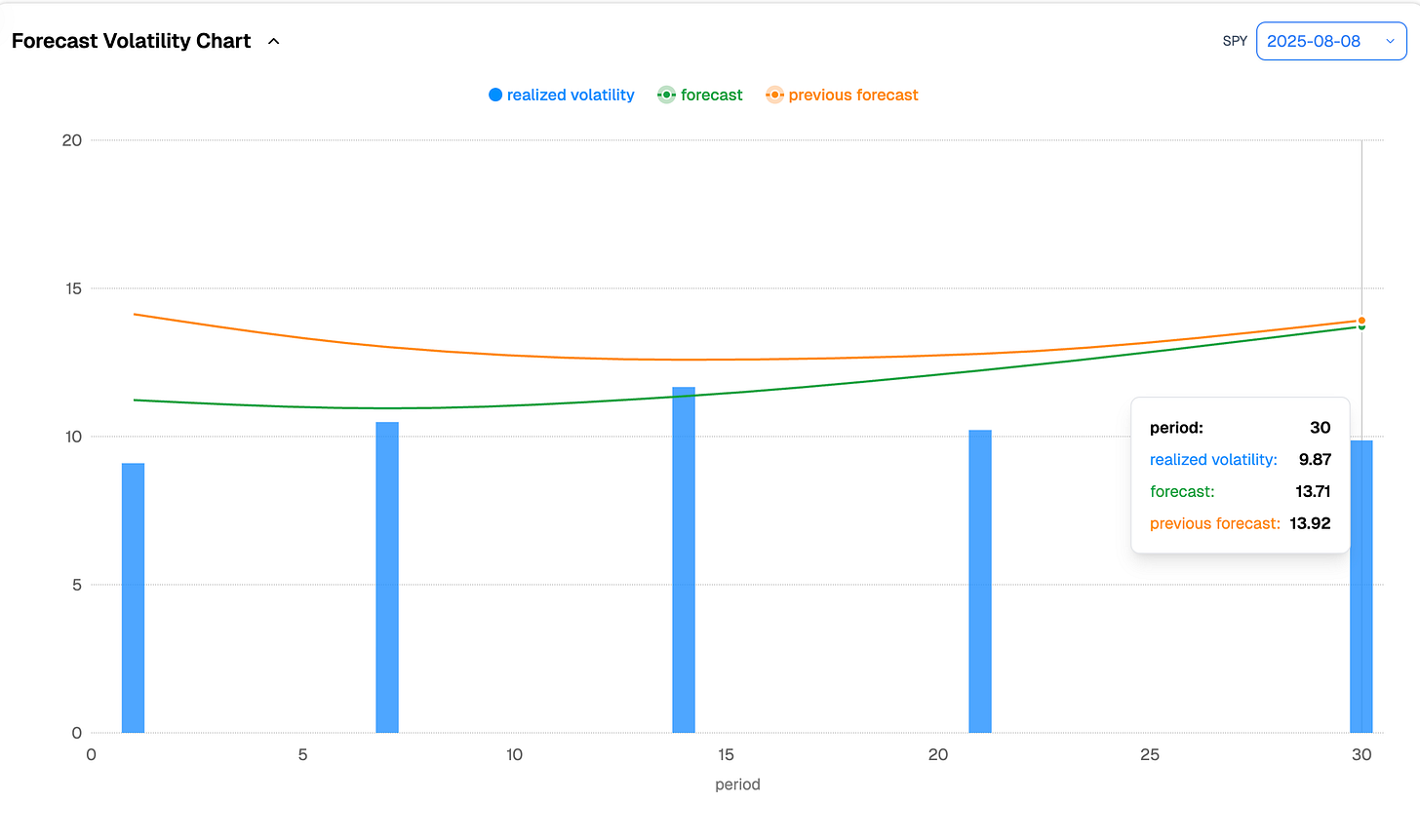 That is the context and the conjecture. From the data side, even after another quiet week, our models still see realized volatility settling around 14 over the next 30 days.